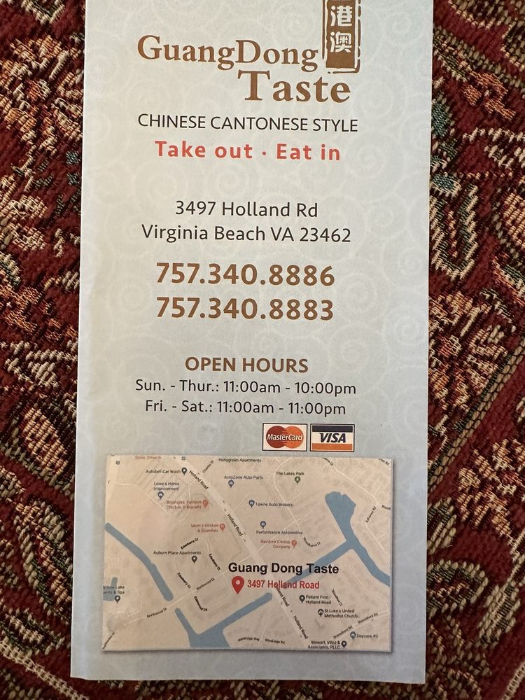GuangDong Taste is a Cantonese soup restaurant located in Virginia Beach, VA. Offering a range of vegan and vegetarian options, this casual spot provides a unique dining experience with original Chinese cuisine. Customers praise the flavorful dishes, such as beef tendon and salt and pepper squid, as well as the attentive staff and clean environment. The restaurant's family-style servings and delicious specialties like roast duck and cashew chicken have left diners impressed. With a menu that includes soup dumplings, egg drop soup, chow fun noodles, and more, GuangDong Taste promises a memorable dining experience for those looking to explore authentic Cantonese flavors. Don't miss out on the chance to try something new and exciting at this gem of a restaurant!
